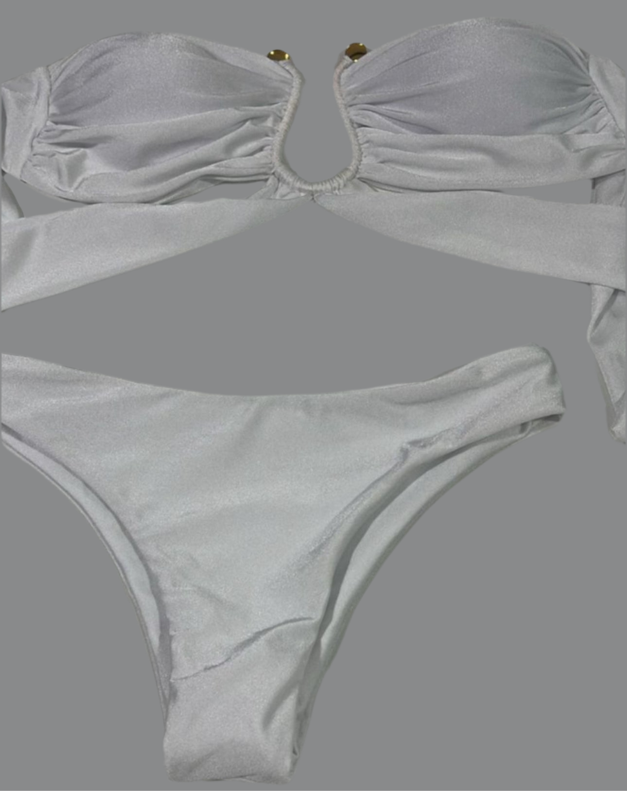 Introducing Gia - a sexy classy two-piece swimwear; featuring 18k gold-plated U center embellishment.