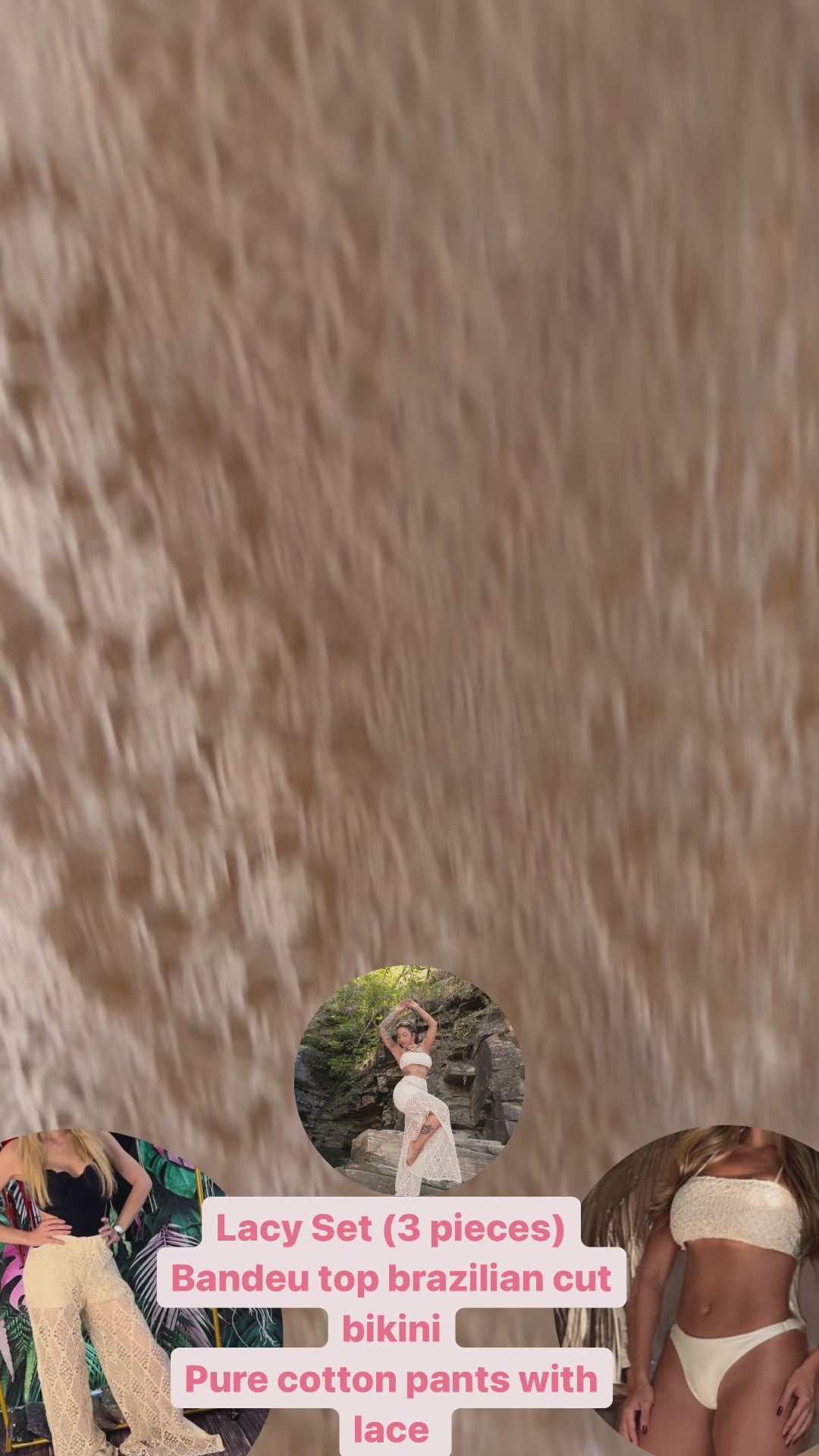 Stunning Lacy set bandeu top with matching Brazilian bottoms and lace/cotton pants (elastic waist) button on the sides.
