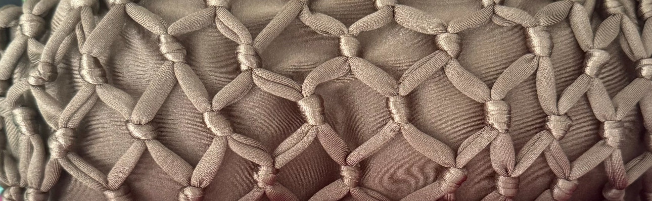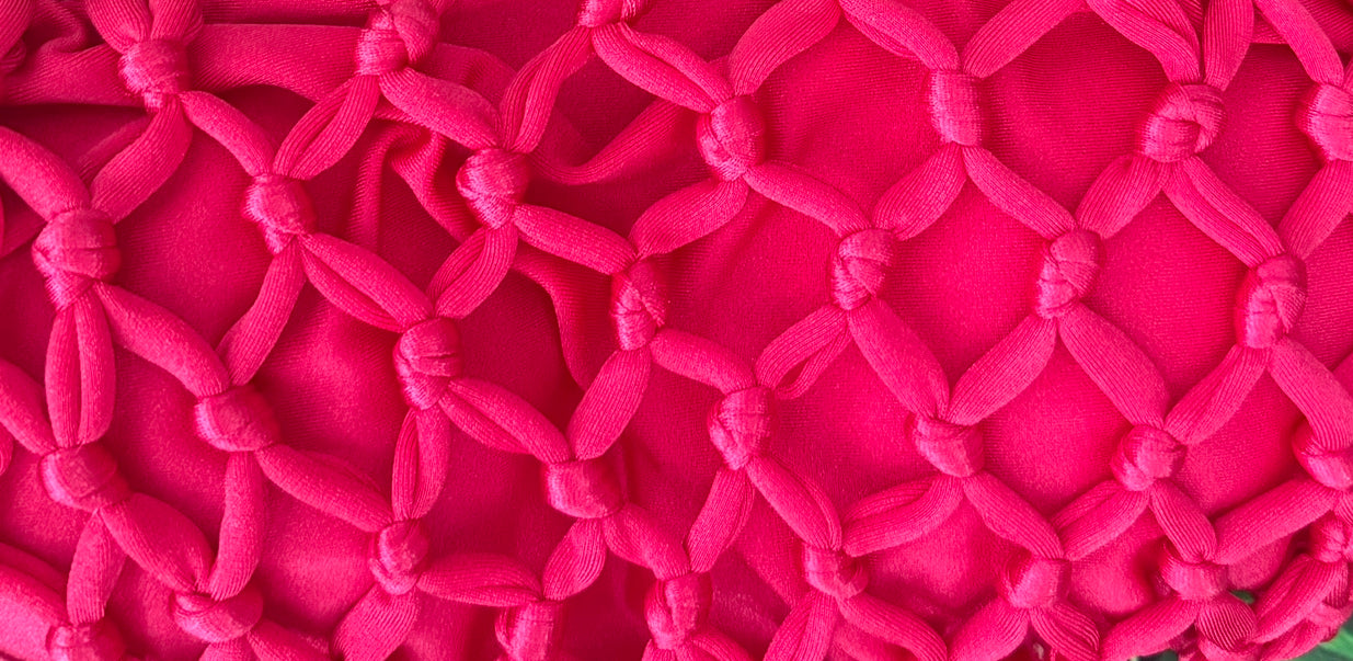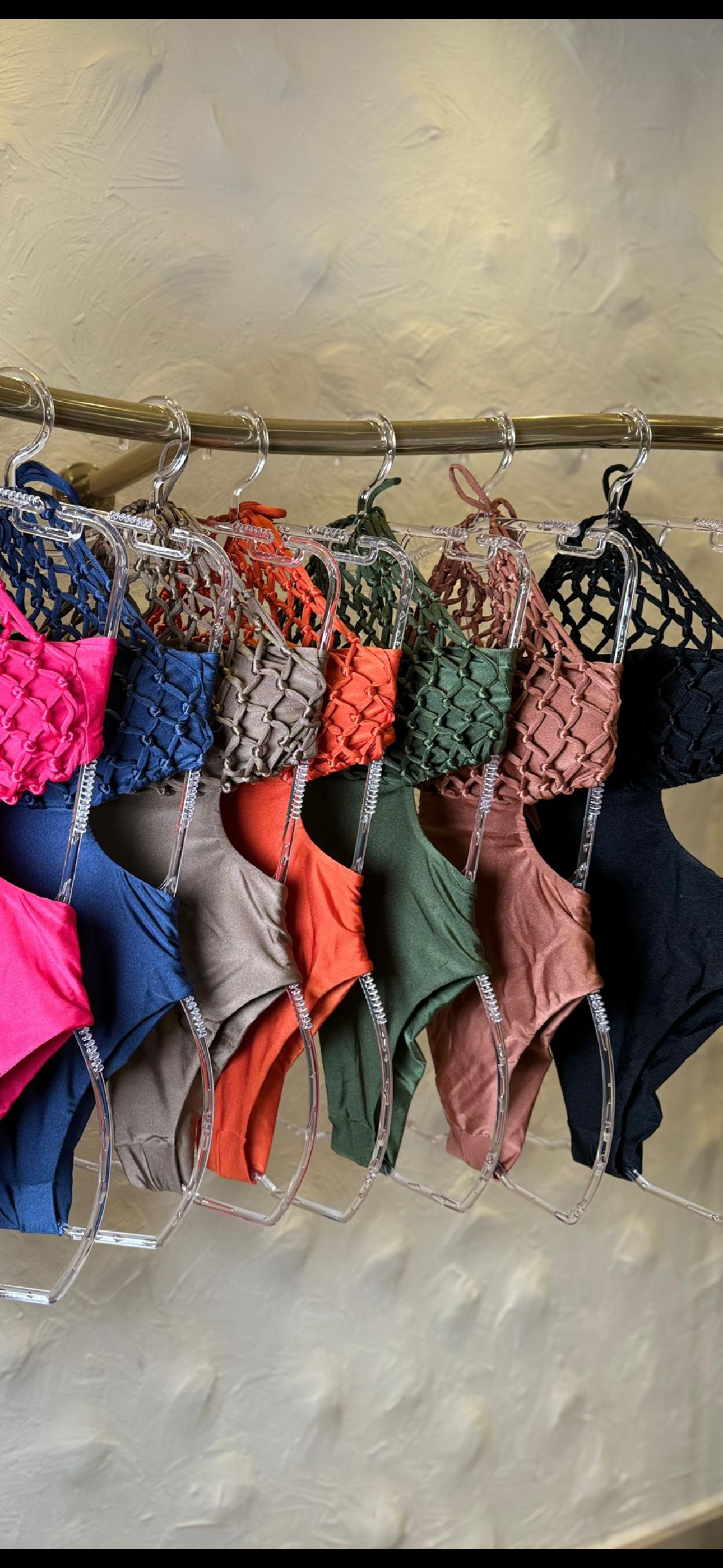 One piece Maya featuring macrame top. Ties around the neck and back comfortably. Incredible fit for all body types featuring a “silky” feel. One size fits all from small to large, this material stretches nicely yet comfortable!