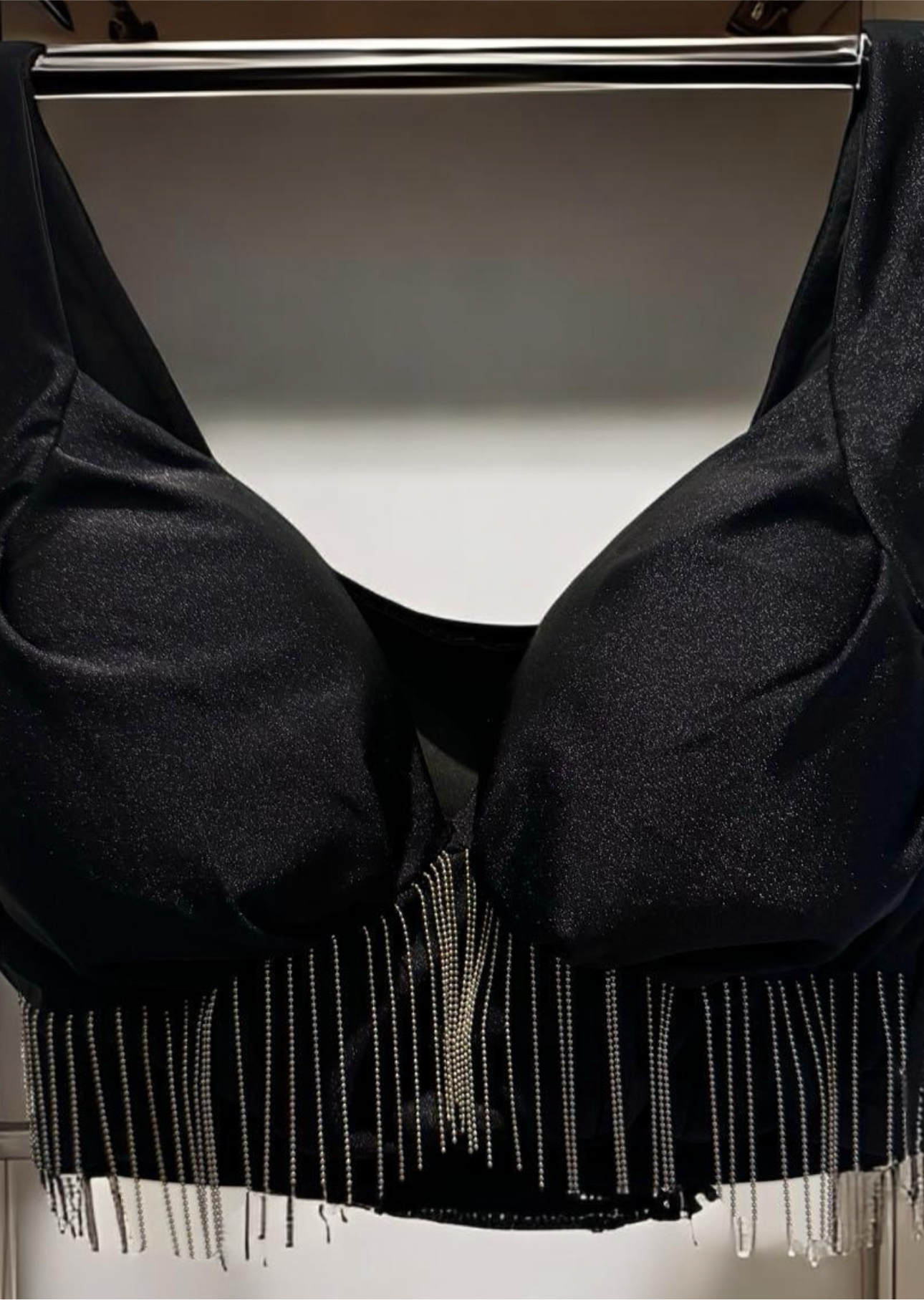 Sexy yet cute padded bustiê with delicate rodium (precious metal) fringe